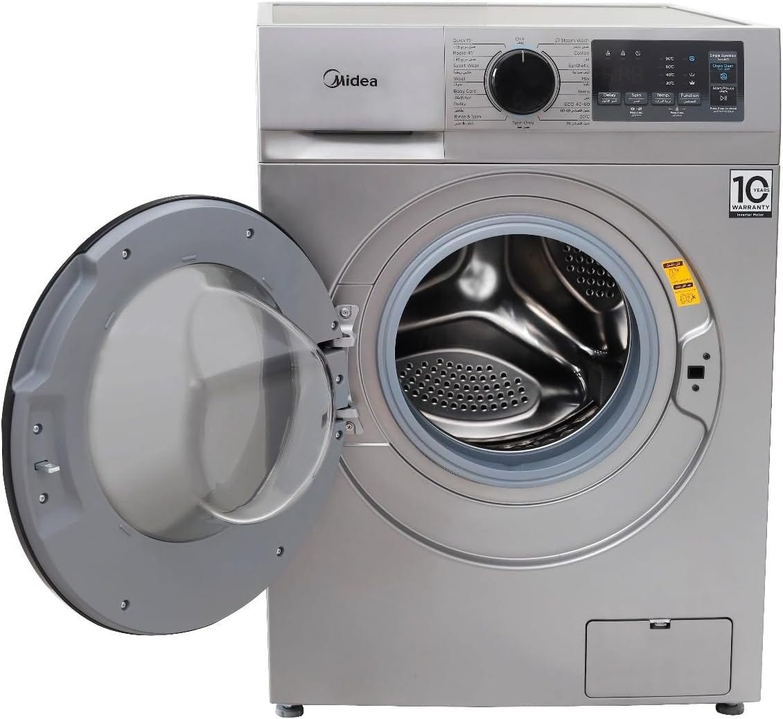 Midea Washing Machine Front Load 7KG Inverter Steam Silver.