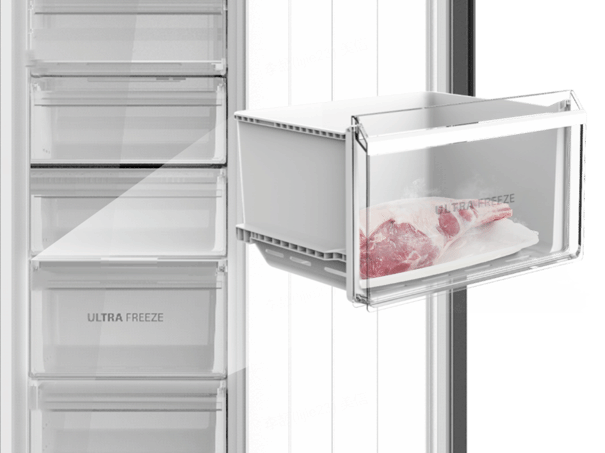 - - تدفق هواء متعدد الطبقات: تصميم قنوات الهواء متعدد الطبقات يضمن تدفق هواء التبريد في كل رف. تبريد متساوٍ، درجة حرارة أكثر استقرارًا، ونضارة أطول.