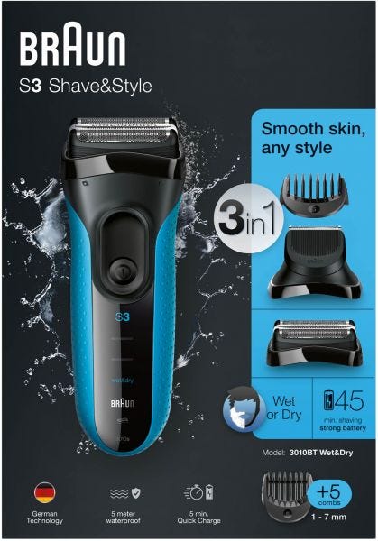 BRAUN SHAVER 310BT BLK/BLU BOX.