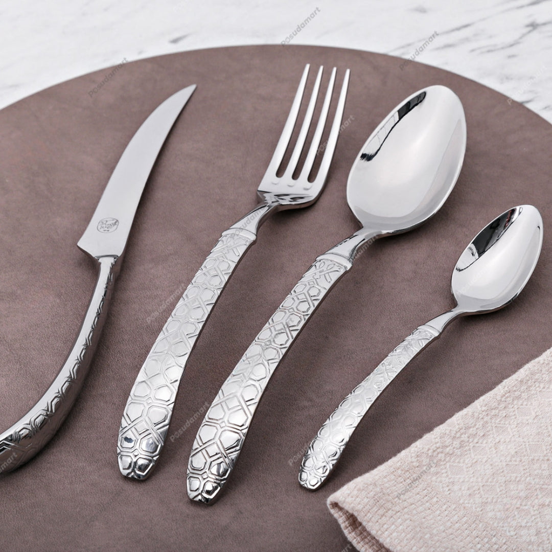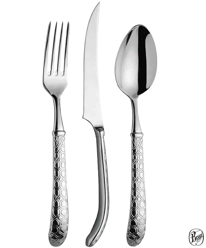 Revisit One Thousand and One Nights with Broggi's intricately designed Ali Baba collection. Set of 2 Pieces: serving spoon and serving fork.