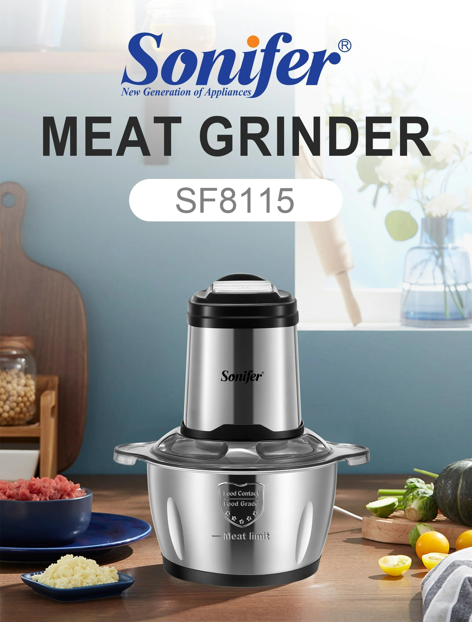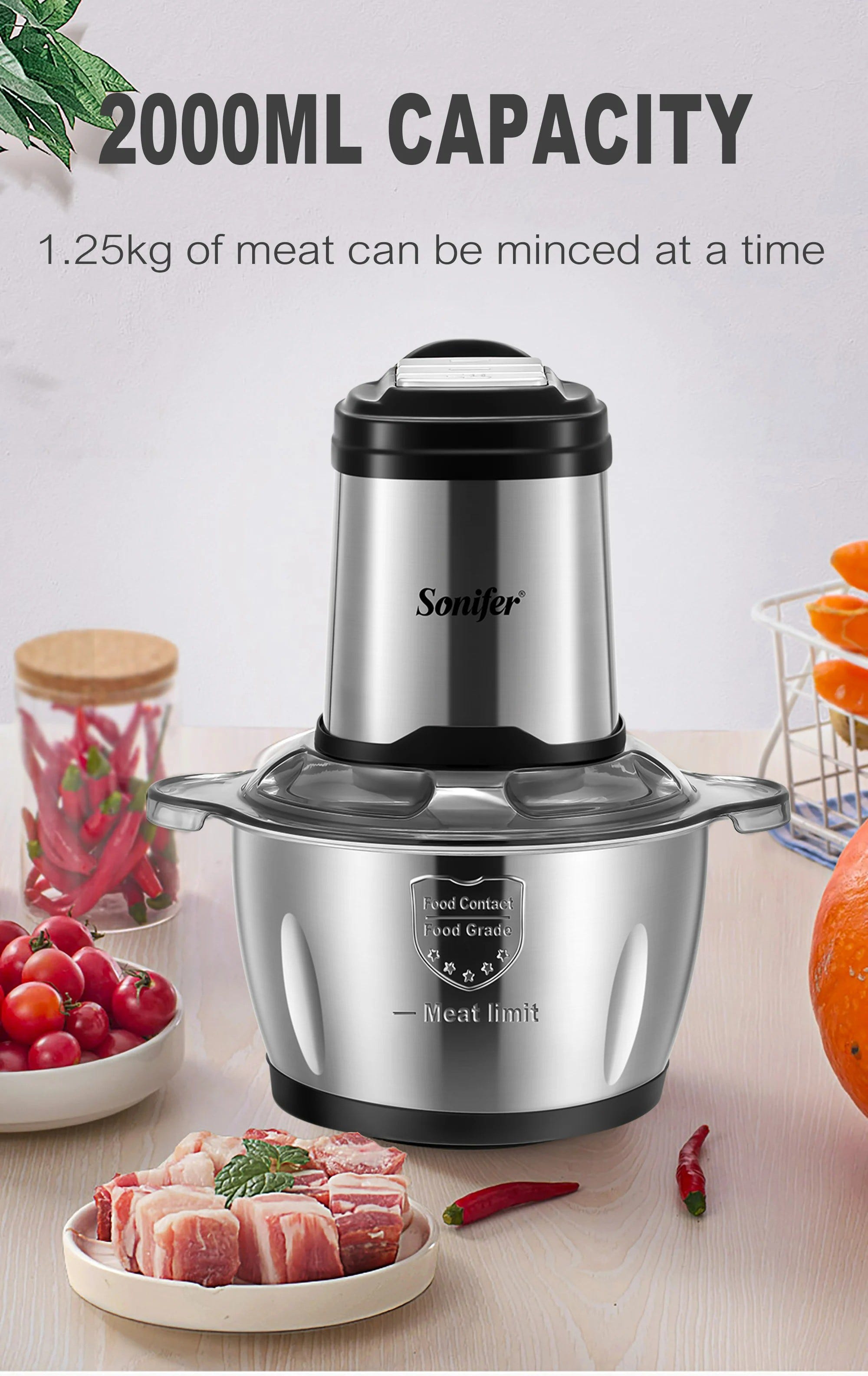 Electric Food Chopper SONIFER 1.8L 400 W SF-8115.