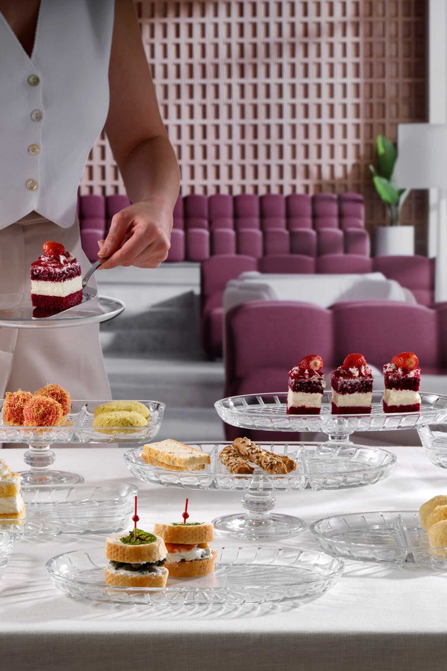 The Pasabahce Elegant serving plate completes the setting with its minimalist design and divided form, ideal for serving multiple flavors in one refined presentation.