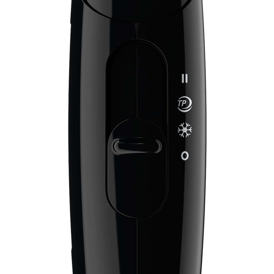 - - 3 اعدادات حرارة وسرعة محددة مسبقا للحصول على تجفيف بارد أو لطيف أو سريع